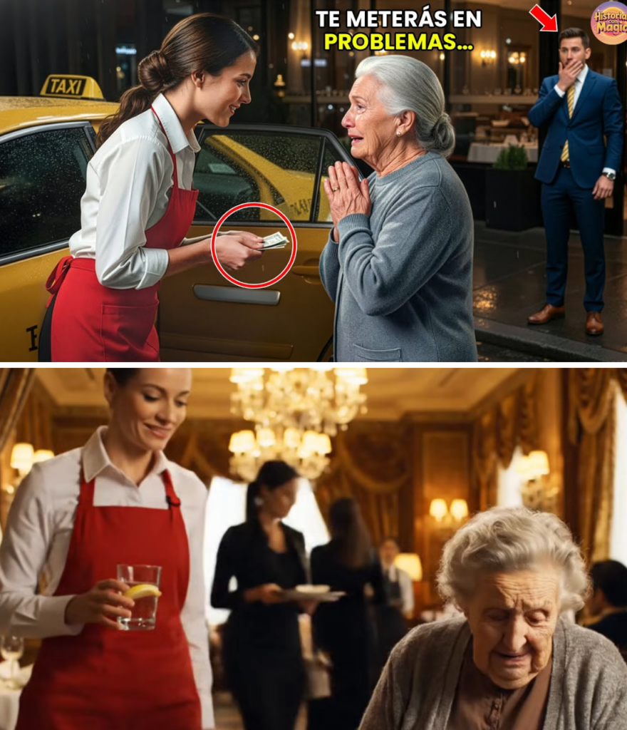 Lucía Morales, una camarera cuyo cansancio solo era superado por su amor hacia su abuela enferma, vio entrar a una anciana empapada. Doña Elena, con su abrigo gastado, no encajaba en el mármol reluciente del salón. El gerente, Ricardo, un hombre que medía el valor de las personas por el grosor de su billetera, intentó expulsarla con desprecio.