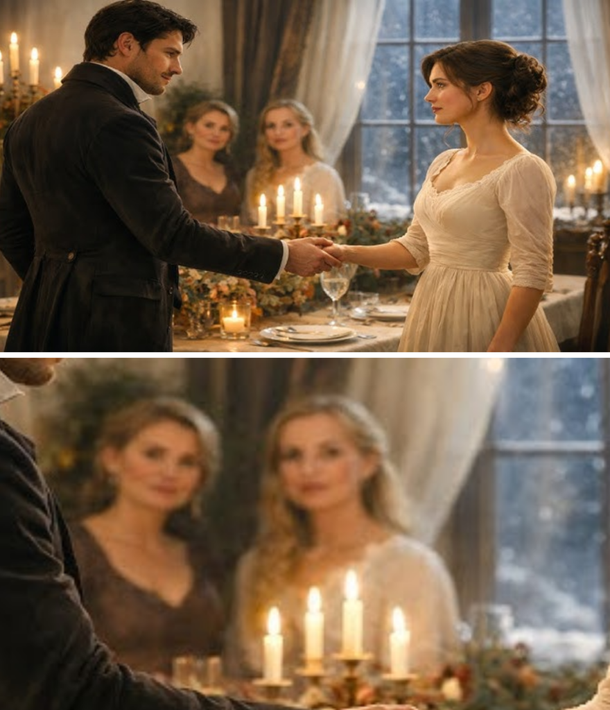 La primera nevada del invierno cayó silenciosa sobre la hacienda Los Fresnos, cuando Mariana alisó por enésima vez las arrugas invisibles de su vestido azul oscuro. No era nuevo, pero Consuelo, su madre, había pasado toda la tarde ajustando la cintura y cambiando el encaje del escote para que pareciera distinto.