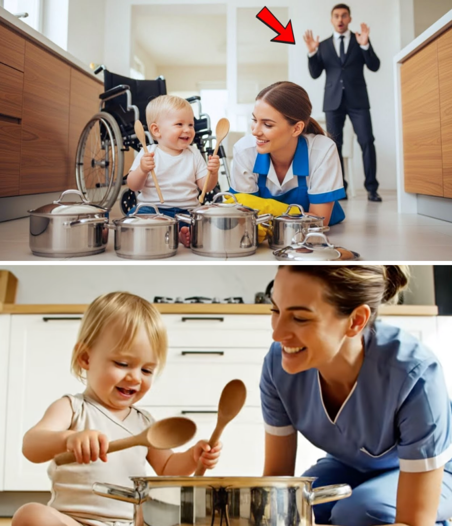 Felipe, con las rodillas temblorosas, hizo lo impensable: se arrodilló. Se sentó en los azulejos junto a su hijo. Julia, con un gesto tierno, le entregó una cuchara de madera. El primer golpe de Felipe contra la olla fue débil, casi un susurro metálico, pero la reacción de Miguel fue un milagro: una sonrisa tímida que pedía más.