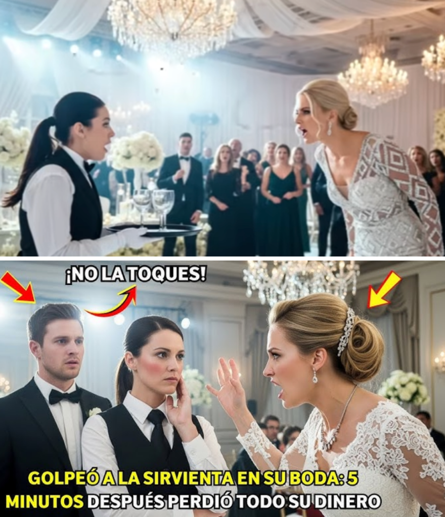 La recepción estaba en su apogeo. Valeria, en el centro de la pista, pidió champán con un chasquido de dedos. Sofía, con la bandeja, se acercó. Valeria giró bruscamente, golpeó la mano de Sofía y la copa de champán se derramó sobre el vestido de encaje. El tiempo se detuvo. Valeria, furiosa, gritó y abofeteó a Sofía, tirándola al suelo. Nadie intervino. La indignación ardía en Sofía. Nunca nadie la había golpeado.