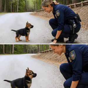 Çoban Köpeği Yavrusu, Yardım İçin Polisi Takip Etti, Polisin Gördüğü Manzara Onu Ağlattı! Ormanın Kahramanı: Hero’nun Hikayesi Sabah, Pinebrook’un orman yolunda huzurlu ve…