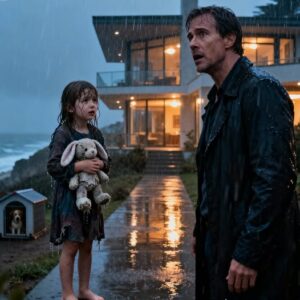 Poor Girl Begged a Millionaire to Sleep in a Doghouse — His Answer Shocked Everyone… The rain hammered down on the glittering coastline…