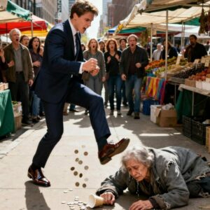 Halkın Ortasında Bir Dilenciye Tekme Attı — Saniyeler Sonra, Kadının Fısıltısı Hayatını Sonsuza Dek Değiştirdi. Chicago şehir merkezindeki cumartesi pazarı ses ve renklerle…