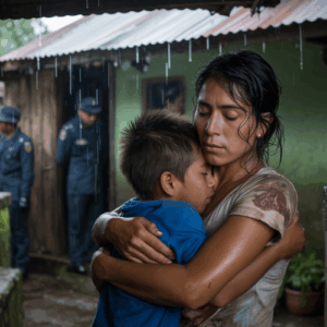 Yağmur Altında Oğluna Sarılan Kadın… Polis Kapıya Vurduğunda: “Cinayetle Tutuklusunuz.” Yağmur, geçmişi hatırlıyormuş gibi öfkeyle yağıyordu. Damlalar, teneke çatının üzerine sanki gökyüzü içeride…