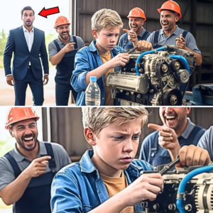 “¿ESTE MOTOR FUNCIONA CON AGUA?” — SE BURLARON DEL NIÑO MECÁNICO… HASTA QUE EL DUEÑO MILLONARIO ENTRÓ Y HUMILLÓ A TODOS A las…