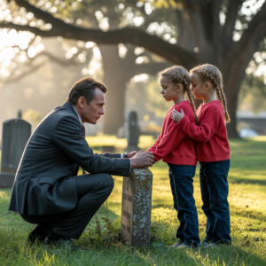 Regresó al cementerio para despedirse de su exesposa, solo para encontrar junto a su tumba a dos niñas idénticas a él que la…