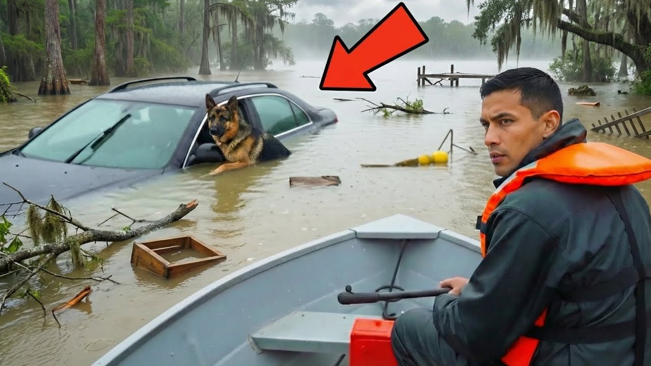 Alman Çoban Köpeği batan arabadan çıkmıyor; içeride buldukları şey ekibi şoka uğratıyor