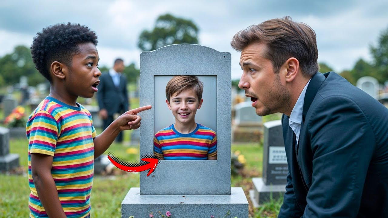Aniden arkasını döndü, bir mezarlık görevlisi ya da başka bir ziyaretçi görmeyi bekliyordu. Bunun yerine, orada duran, kıvırcık saçlı, buğday tenli, beş yaşlarında küçük bir çocuk gördü. Üstünde aynı çizgili tişört vardı.