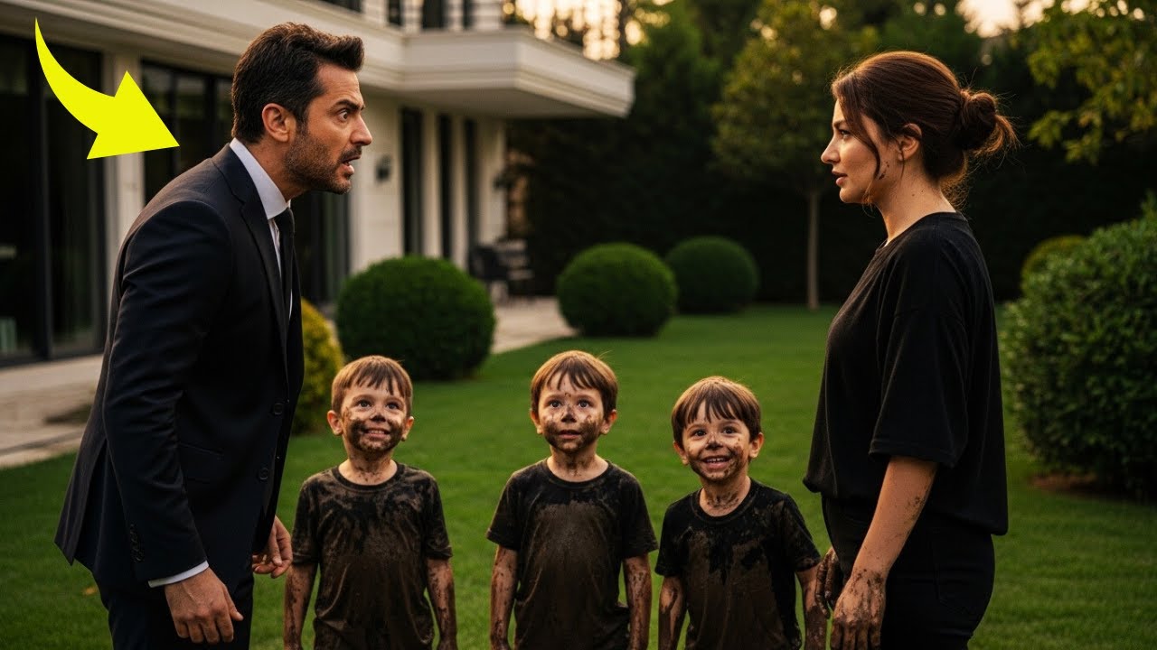 Bahçenin ortasında üç küçük figür—altı yaşındaki üçüzleri Mert, Can ve Yusuf—baştan ayağa çamura bulanmıştı. Yüzlerinde, kollarında, dizlerinde… Çamur, sanki bir kıyafet gibi üzerlerine yapışmıştı. Çocukların saçlarında bile kahverengi lekeler vardı. Dizlerinin yanında plastik kovalar, küçük kürekler, kırık bir oyuncak kamyon… Bahçenin toprağı kazılmış, küçük çukurlar açılmış, bir yerden su getirilmiş, her şey çamura çevrilmişti.