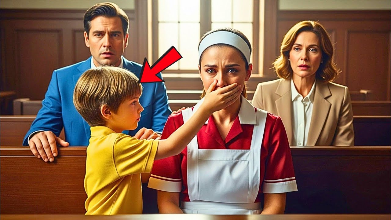 Çocuğun sözleri, Sessiz Mahkeme Salonu’nda öyle saf ve kararlı yankılandı ki, yargıç bile şaşkınlıkla gözlerini kaldırdı. Kırmızı üniforması ve beyaz önlüğüyle sanık sandalyesinde oturan temizlikçi kadın titriyordu. Yedi yaşından büyük olmayan çocuk, küçük elini kadının ağzına, sanki onu kendi korkusundan koruyormuş gibi, bastırıyordu.