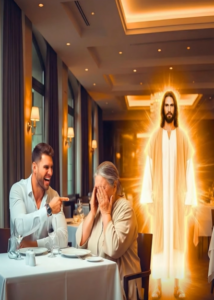 En una mesa junto a la barandilla, un hombre de mediana edad, con una barba bien cuidada y vestimenta sencilla (una camisa de lino blanco inmaculado y pantalones de mezclilla, notablemente fuera de lugar en ese restaurante), miraba la escena. Su presencia era tranquila, pero su mirada tenía una intensidad que atraía la atención sin buscarla. Los meseros lo llamaban Jesús y sabían que era un cliente extraño: un hombre que siempre pedía agua simple, sonreía a todo el personal y dejaba propinas ridículamente generosas.
