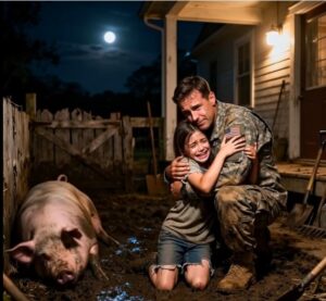 Esa noche, mientras desempacaba en la habitación de invitados, un sonido suave llegó desde la ventana abierta. Primero fue un gemido, luego un sollozo ahogado. El instinto militar de Daniel se activó. Tomó una linterna y salió al patio, siguiendo el sonido a través de la oscuridad, pasando el granero y llegando hasta el corral de los cerdos.