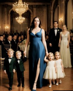 El día de la boda, un susurro helado recorrió el gran salón cuando una limusina blanca se detuvo frente a la entrada principal. Olivia emergió de ella como un huracán calmo, envuelta en un vestido zafiro que resaltaba sus ojos y flanqueada por sus cuatro hijas, vestidas de blanco y azul cielo. Una visión imposible de ignorar.