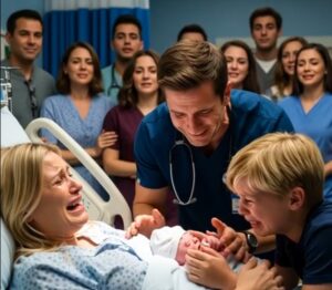 La ambulancia llegó en minutos. Los paramédicos trasladaron a Laura al hospital, donde el caos se apoderó de los pasillos. El doctor Erica Lewis examinó a Laura y su expresión se volvió sombría. “Está sufriendo un desprendimiento de placenta severo”, le informó a David. “Tenemos que operar de inmediato. La vida de su esposa y la del bebé están en peligro.”