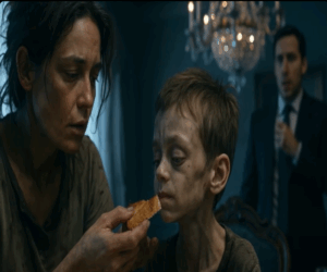 En ese momento, Ricardo Balmon apareció en la puerta, atraído por la conmoción. Su rostro mostraba cansancio, preocupación y una pizca de esperanza. Al ver a Sofía comiendo, se quedó paralizado. Por primera vez en mucho tiempo, el hombre más poderoso de la ciudad no supo qué decir.