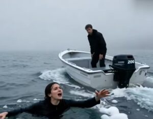 Antes de que Laura pudiera reaccionar, Adam la empujó con fuerza. El mundo giró: cielo, mar, y luego el frío absoluto del Atlántico la envolvió. Emergió, jadeando, el agua helada apretando sus músculos.