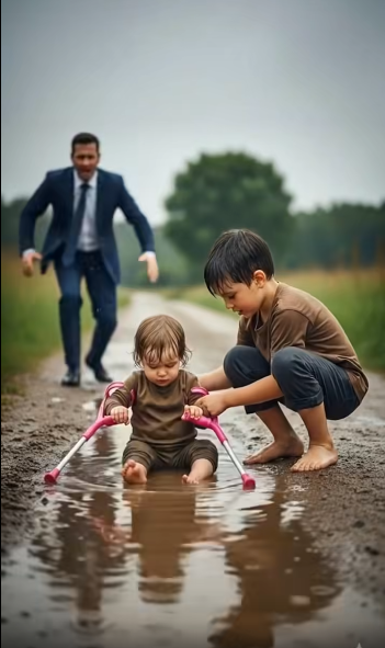 Alejandro se dejó caer de rodillas en el barro, ignorando su reloj de lujo y su ropa costosa. Vio cómo Mateo, impulsado por el deseo de alcanzar un pequeño barco de papel que Chucho había puesto al otro lado del charco, hacía un esfuerzo sobrehumano. Sus piernas temblaban, los músculos se tensaban bajo la piel pálida, pero no había rastro de la resignación de antes. Había fuego. Había voluntad.