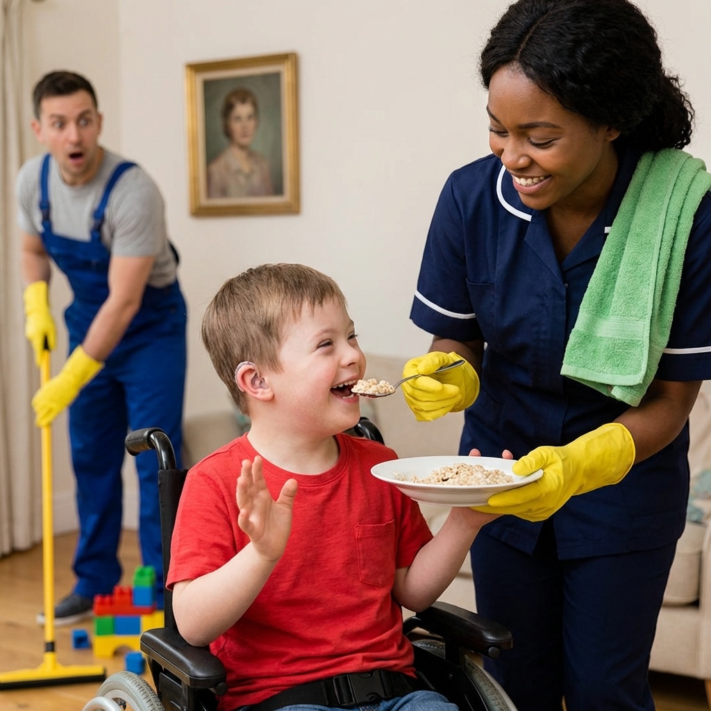 El mango de la escoba golpeó el suelo cuando se le resbaló a Richard de las manos. Emma se quedó inmóvil, procesando las palabras. No lo corrigió, no se rió. Le acarició la mejilla y dijo con voz temblorosa: —Tú eres mi niño especial, Liam. Siempre estaré aquí.