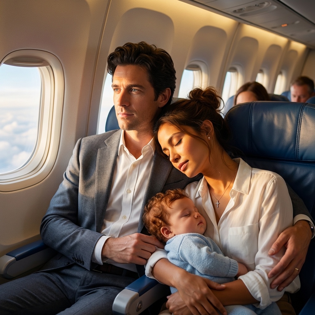Cualquier otro día, Víctor se habría movido. Habría tosido cortésmente o llamado a la azafata. Pero ese día, miró el rostro relajado de Paola, la boca ligeramente entreabierta, la respiración profunda de quien por fin se siente seguro, y tomó una decisión. No se movió. Ni un milímetro. Dejó de leer. Santiago también se había dormido en el regazo de su madre. Víctor se convirtió en una estatua, un guardián silencioso de esa pequeña familia vulnerable. Pasaron las horas. Su brazo se entumeció, su cuello comenzó a doler, pero una extraña calidez le invadía el pecho. Por primera vez en años, se sentía útil de una manera real, humana. No estaba cerrando un trato; estaba sosteniendo un sueño ajeno.