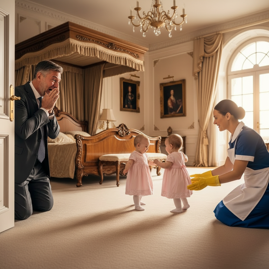 En medio de la alfombra persa —la misma que había elegido en Estambul con orgullo de coleccionista— una joven con uniforme azul sostenía las manitas de dos bebés gemelas. Dos niñas idénticas, ojos enormes, cabello castaño, pasos torpes, risas limpias. La joven era Lucía, la empleada hondureña que había contratado para ayudar con la limpieza.