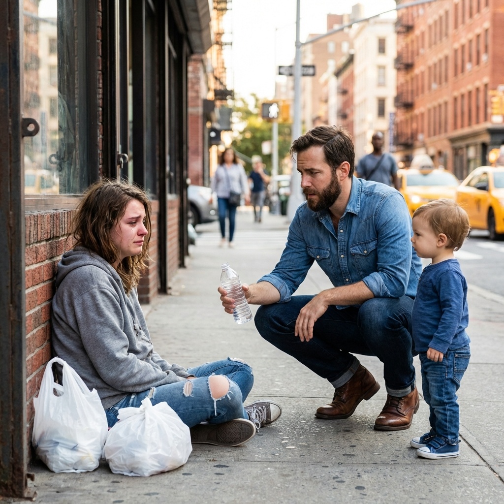 El sol del mediodía caía a plomo. Sofía cerró los ojos, mareada, cuando una sombra la cubrió. Esperó el habitual “muévete de aquí”, pero en su lugar, sintió el frío de una botella de agua rozando su brazo.