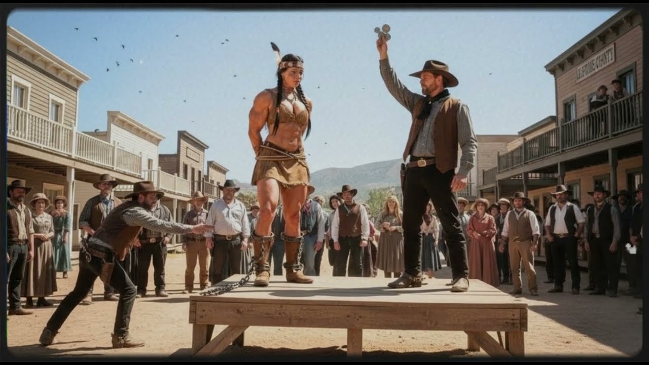 El sol abrasaba sobre Dusk Creek, ese pueblo miserable donde la avaricia y el whisky corrían más gruesos que la sangre. Frente al puesto del sheriff, la multitud se reunía como moscas en un cadáver, gritando y burlándose. En el centro, sobre una tarima improvisada, una joven apache permanecía atada con cuerdas, orgullosa incluso en su silencio. No inclinaba la cabeza ni se inmutaba cuando el sheriff gritaba su descripción, ni cuando los hombres reían de forma vulgar.