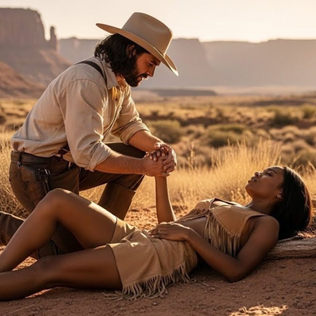 Aguzando el oído, espoleó a su caballo hacia un pequeño barranco. Allí, entre ramas caídas y el frío que anunciaba la noche, la vio: una joven mujer negra, de mirada profunda y alma herida, atrapada bajo una rueda rota de carreta. Su ropa estaba sucia y desgarrada; sus rizos oscuros se pegaban a su rostro húmedo por el esfuerzo y el miedo. Cuando lo vio acercarse, sus ojos se llenaron de pánico.