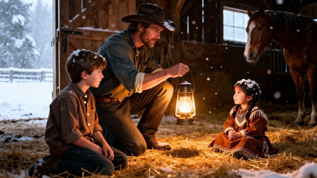 “El ranchero encontró a una pequeña niña apache sola en el establo… luego la escuchó susurrar