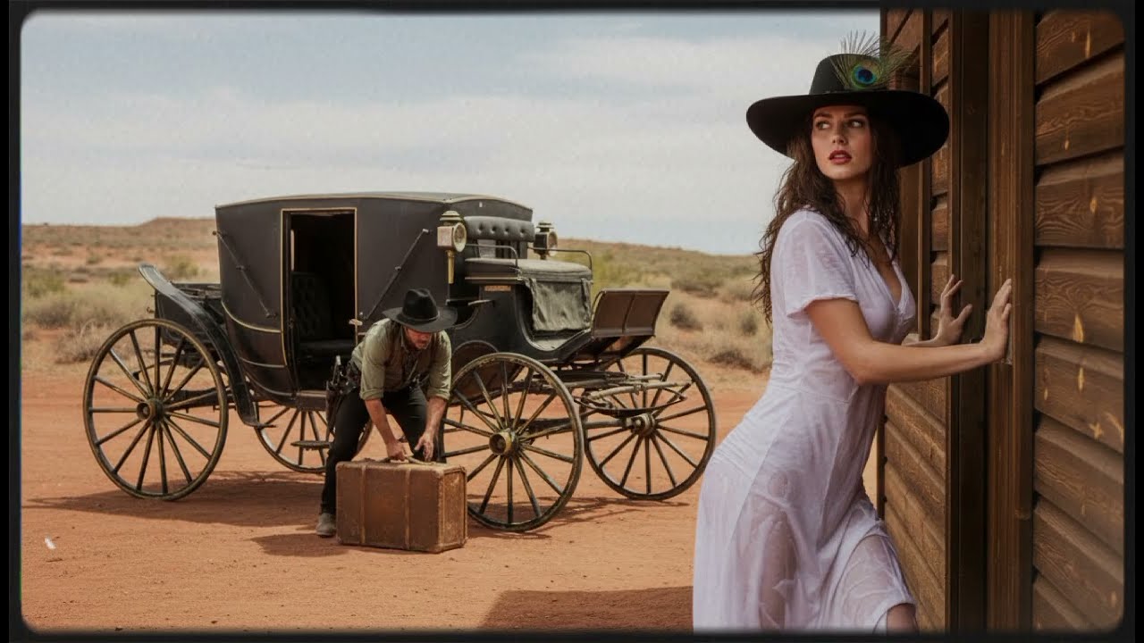 La mujer que bajó del carruaje tenía un porte que no correspondía al paisaje árido y desolado que la rodeaba. Vestía un vestido blanco de seda que se pegaba a su cuerpo por el sudor, y llevaba un sombrero de ala ancha decorado con una pluma de pavo real. Su piel era morena, su cabello negro largo y brillante, y sus ojos oscuros parecían contener secretos que Elías nunca había conocido. En sus manos llevaba una maleta de cuero, que el cochero mexicano descargó con reverencia antes de marcharse sin decir palabra.