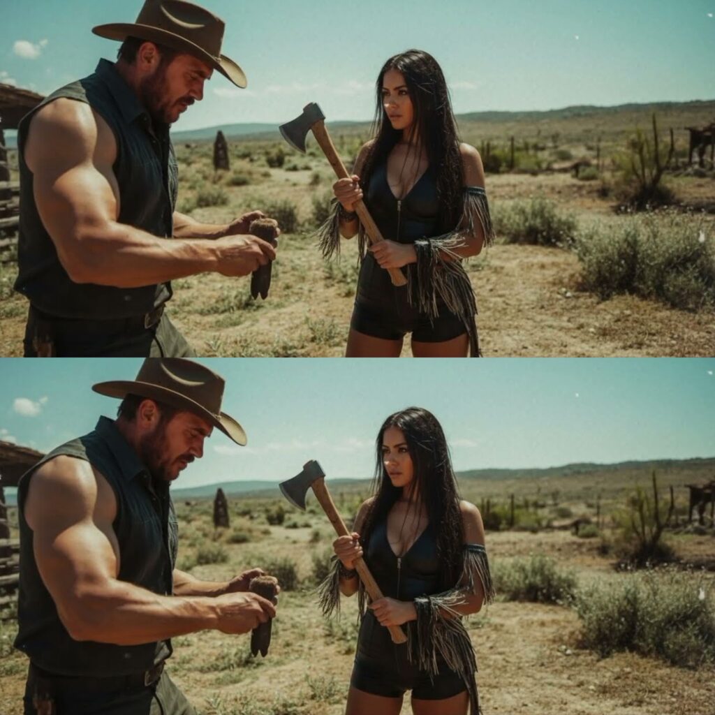 Sobre su lomo, erguida como diosa vengadora, cabalgaba una mujer apache. Sus ojos negros brillaban con furia contenida, plumas de águila adornando su cabello largo y salvaje, y un cuchillo reluciente atado al muslo desnudo.