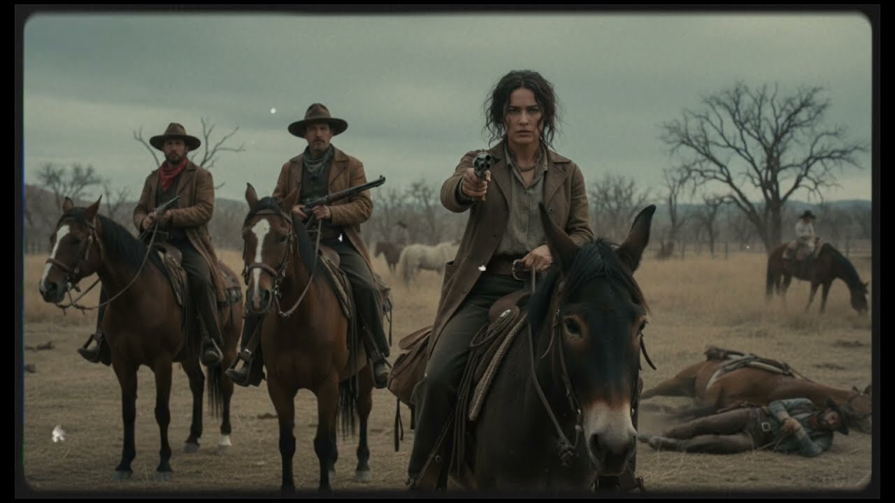 Los caballos relincharon. Los bandidos cayeron. Lucía temblaba, el revólver humeante en su mano.