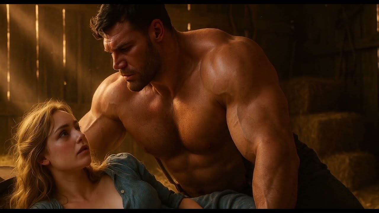 El heno seco crujía bajo sus cuerpos mientras Jake se posicionaba sobre Sarah, apoyándose en los codos para no aplastarla con su peso considerable. Su respiración era pesada, controlada, mientras observaba cada expresión en el rostro de la joven. Sarah llevaba puesto un vestido azul de algodón que ahora estaba levantado hasta sus muslos, el corsé desabrochado, revelando la piel pálida que rara vez veía la luz del sol. Su cabello rubio se había soltado del moño, esparciéndose sobre el heno como hilos dorados.