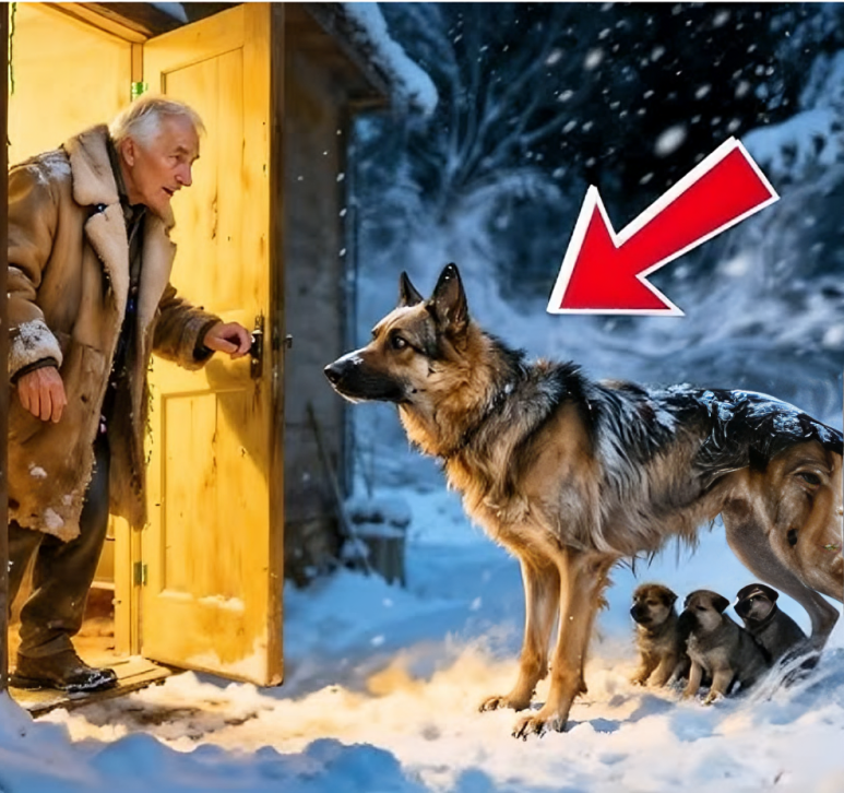 Yavaşça geri adım attı ve kapıyı açarak onlara sessizce sığınak teklif etti. Anne köpek, yavrularını içeri yönlendirdi. Kulübenin sıcaklığı onları sararken, anne köpek ateşin yanına çöktü ve yavrularını sıkıca yanına kıvırdı.