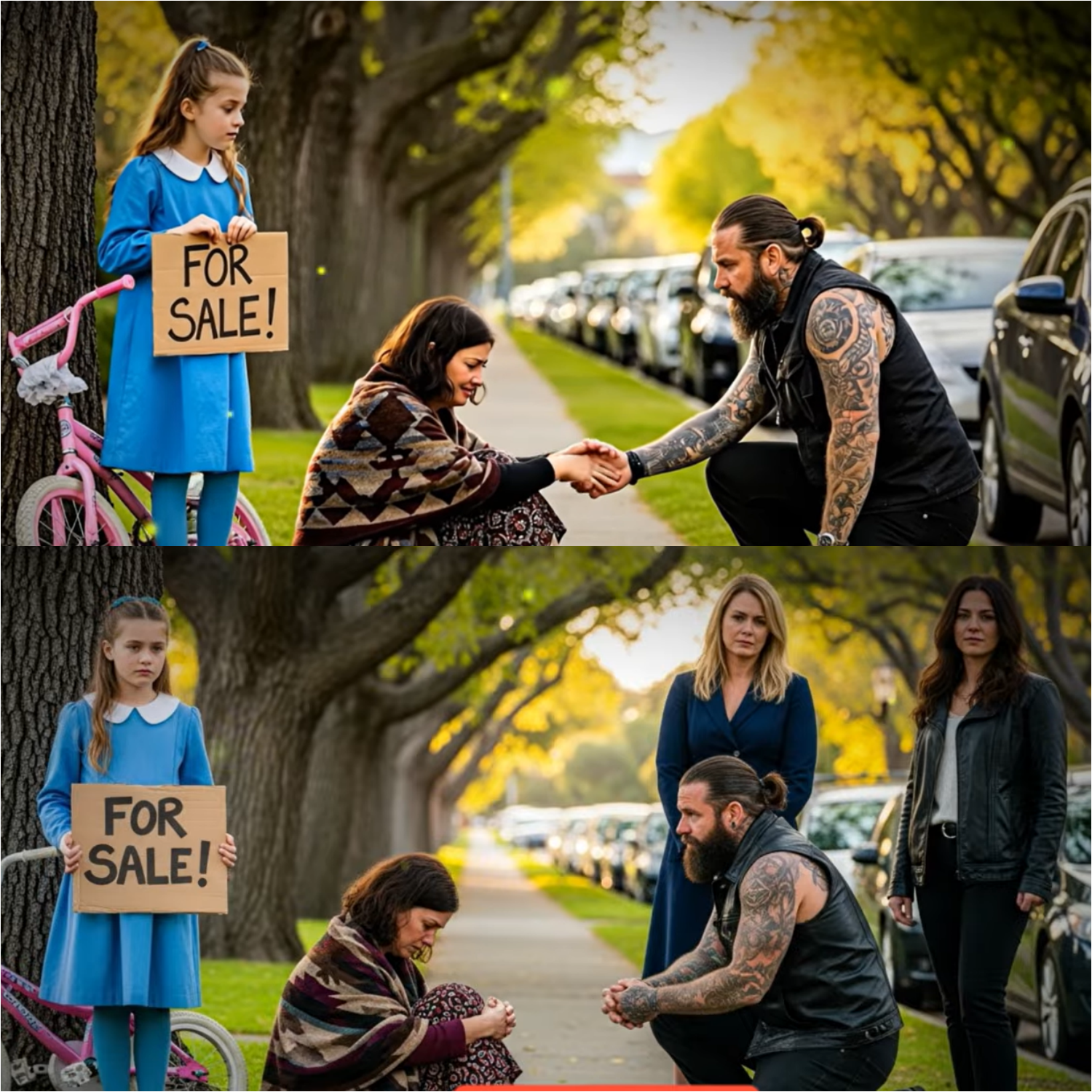 Tam o sırada, kırmızı ışıkta bekleyen bir grup motosikletçi durdu. Siyah deri giymiş, dövmeleriyle dikkat çeken, güçlü görünümlü adamlardı. İçlerinden biri, gür sakallı, güneş gözlüğü takan uzun boylu bir adam, çocukları fark etti. Motorundan inip yanlarına yaklaştı. Levhayı okudu, kızlara baktı ve sordu: “Neden bisikleti satıyorsunuz?”