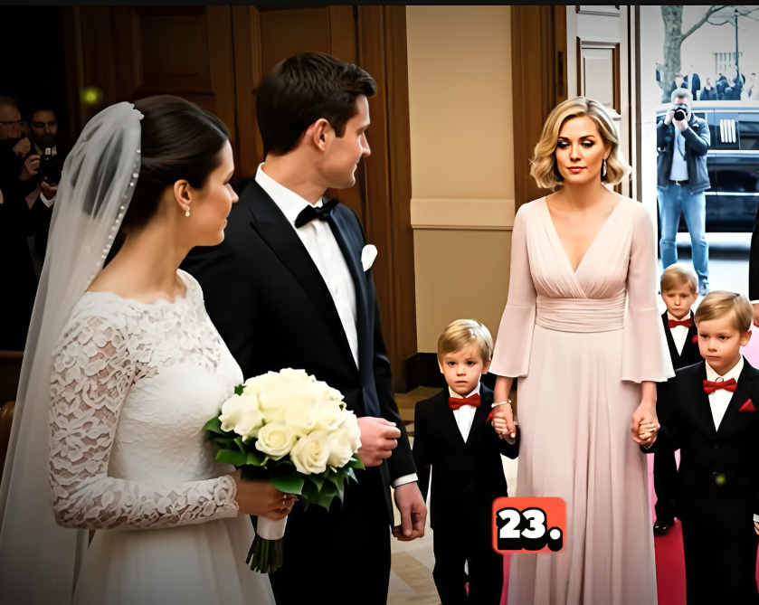 İlk olarak herkesin gördüğü, mükemmel smokinler içinde yürüyen üç küçük oğlandı. Arkalarında, Kerem: sakin, kendinden emin bir baba ve koca.