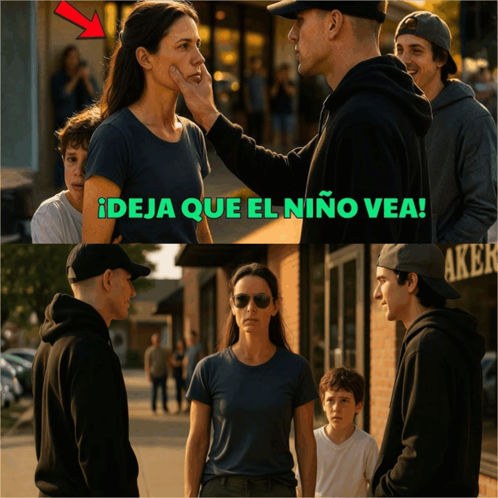 Todo se congeló. La acera contuvo el aliento como una sola persona. Alguien jadeó. Una mujer cerca de la panadería se llevó la mano a la boca. Los chicos de la patineta se enderezaron. Teo gritó, “¡Mamá!”
