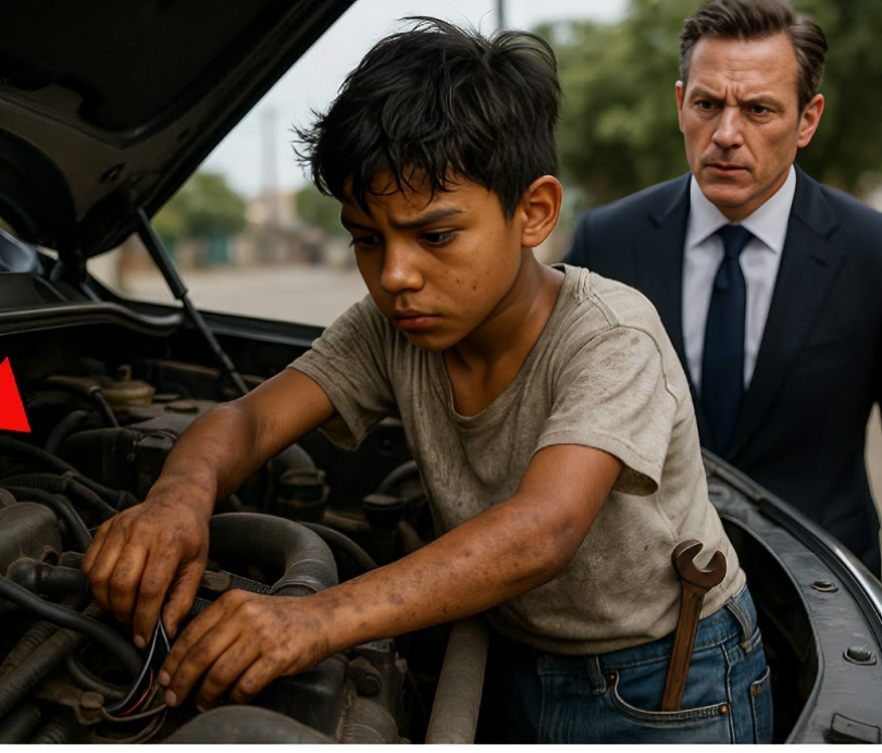 Con manos rápidas, el niño abrió el capó. Su mirada se iluminó como si entrara a un mundo que conocía mejor que nadie. En minutos, detectó el problema: un cable flojo en el sistema de encendido. Lo ajustó con una vieja llave oxidada que llevaba en el bolsillo, un recuerdo de su padre.