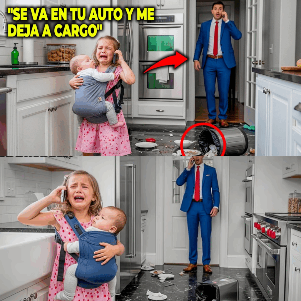 Cuando por fin llegó, la casa lo recibió con un silencio frío. La puerta de la cocina se abrió y el alma se le vino abajo: su hija estaba de pie con la ropa manchada de comida, sosteniendo al hermanito con un portabebés improvisado hecho con una bufanda; las mejillas rojas, los ojos hinchados. El suelo era un campo de batalla: platos rotos, una mamadera caída, restos de puré pegados a las baldosas. El bebé lloraba a gritos, rojo, desconsolado.