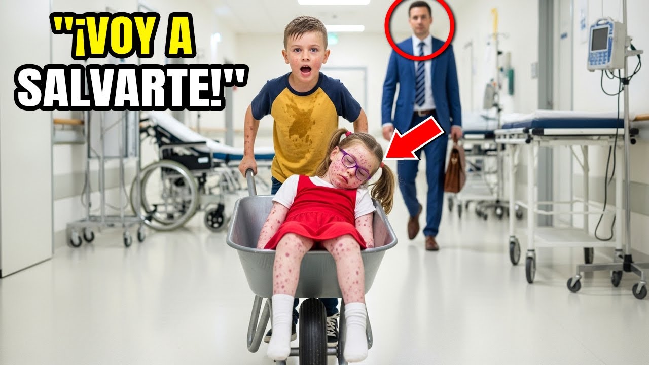 Al llegar a la entrada del hospital, una enfermera se sorprendió al ver a un niño empujando a otro en una carretilla. Liam solo alcanzó a decir: “Está enferma, necesita ayuda, por favor.”
