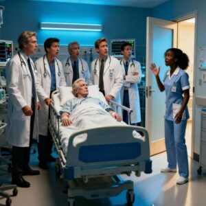 Esa noche, sonaron las alarmas: código azul. Los órganos de Victor empezaron a fallar. Los médicos entraron corriendo, gritando órdenes. Angela se quedó paralizada en el pasillo, viendo cómo se desataba el caos. El multimillonario se moría y nadie sabía por qué.