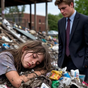 La niñita dormitaba en un contenedor de basura cuando un hombre extremadamente rico se acercó a ella… Y lo que descubrió lo conmovió…