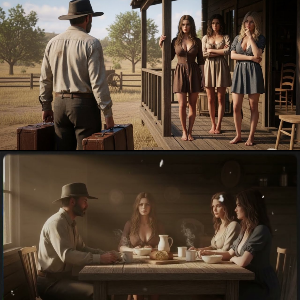 Los días se convirtieron en semanas. Elias arregló el granero, reparó el pozo y enseñó a las hermanas a manejar mejor el ganado. Las mujeres, a su vez, le mostraron cómo las risas y la calidez podían sanar un alma cansada.