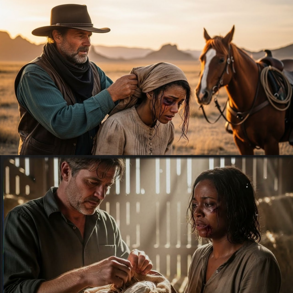 El viento silbaba entre la alta hierba de la pradera, llevando consigo el tenue aroma a humo del pueblo distante. Era una madrugada fría, y Clara Reynolds, una joven mujer negra de manos firmes y corazón valiente, avanzaba con paso decidido hacia las imponentes puertas del rancho de Thomas Avery. Sobre su hombro, una bolsa pesaba más que el cansancio acumulado de una noche entera de viaje. Sus botas crujían contra el camino helado, y su aliento formaba nubes suaves en el aire gélido.