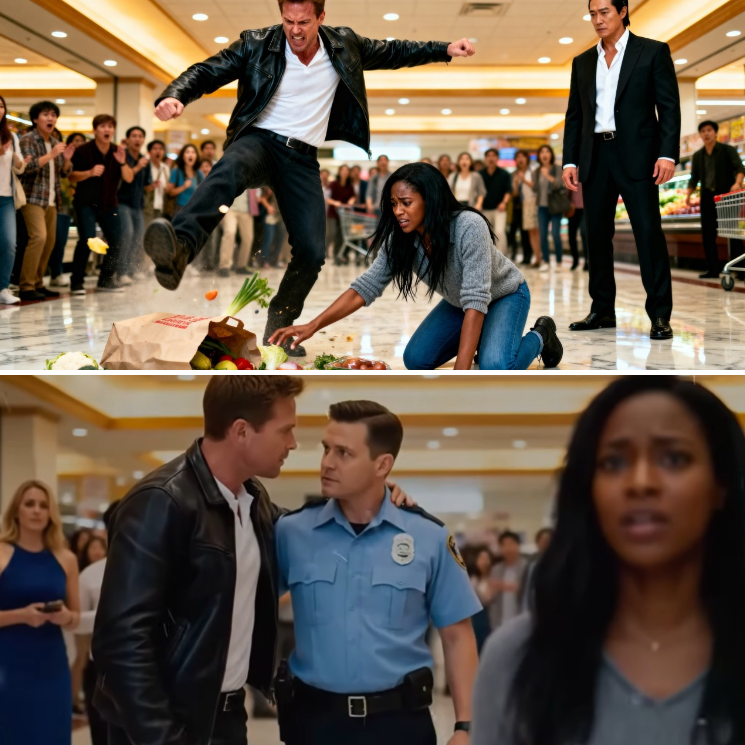 El sonido fue vulgar, no un crujido fuerte, sino un golpe húmedo y percusivo que atravesó el zumbido estéril del Galleria Grand Luxury Market. Era el sonido de una loa de cuero, una loa de Gucci para ser precisos, conectando con el costado de una bolsa de papel. Por un segundo, la bolsa mantuvo su forma, un rectángulo marrón desafiante contra el pulido mármol italiano. Luego se rindió. Un cartón de huevos orgánicos estalló en una mancha amarilla. Una cascada de manzanas rojas brillantes. Cada una, una esfera perfecta y brillante, rodó por el suelo como joyas derramadas en arcos caóticos y silenciosos.