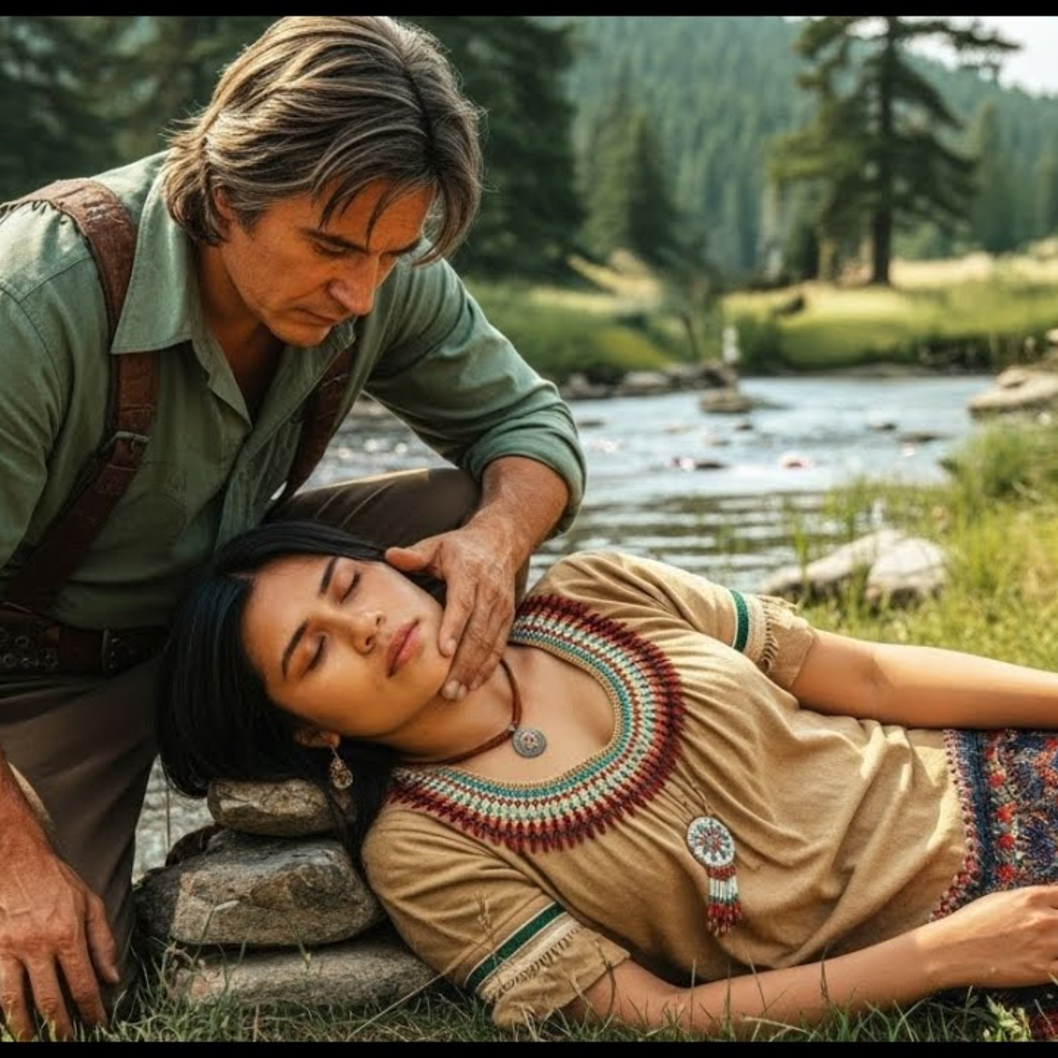 La apache yacía hecha un ovillo junto al agua, la sangre empapando el vestido en el hombro. Respiraba a trompicones. Colton notó la calidad de la ropa: no era de cualquiera, sino de alguien importante. Al arrodillarse, el sol rebotó en algo brillante: un collar de plata con turquesas, el mismo patrón que lo perseguía en sueños desde hacía tres años. Fort Defiance. La delegación de paz. La emboscada. La sangre.
