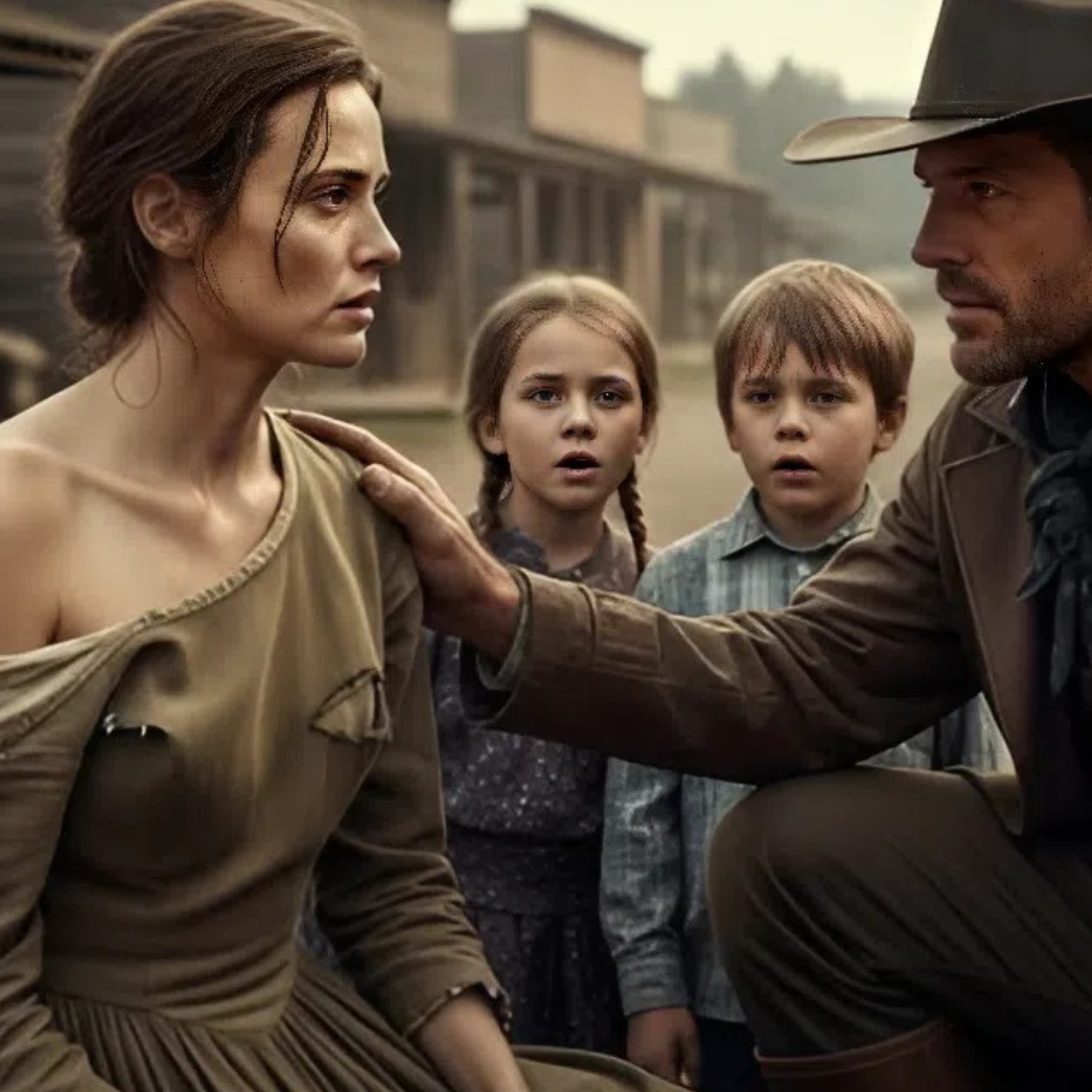 El sol apenas había comenzado a asomar sobre las montañas dentadas del lejano oeste, pintando rayos pálidos de luz sobre el polvoriento pueblo de Red Creek. Las viejas construcciones de madera crujían bajo el peso de los años, y el viento traía consigo el aroma de la tierra seca y el humo tenue de las chimeneas. Entre estas calles desgastadas, una mujer llamada Clara luchaba por mantener a su familia unida tras la repentina muerte de su esposo.