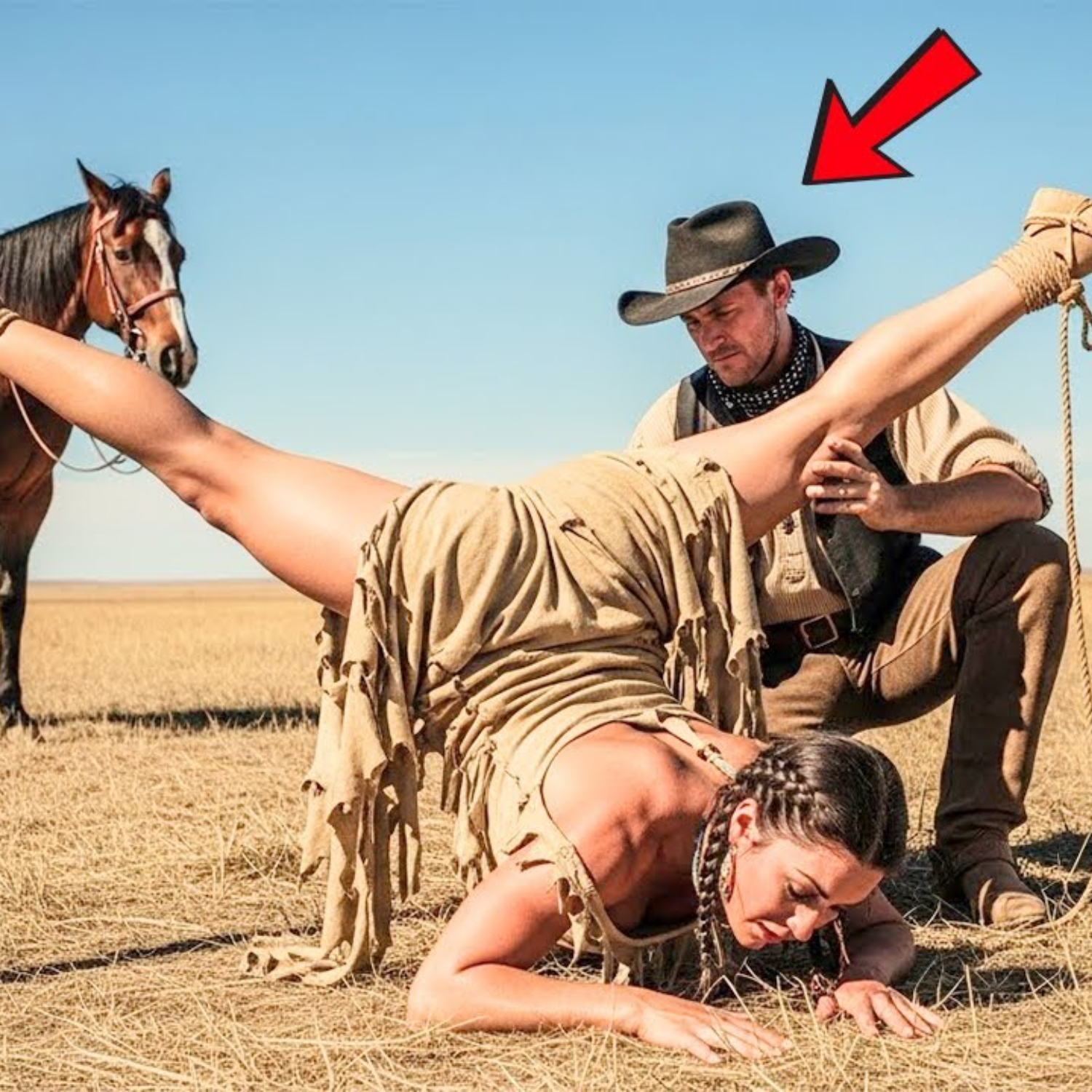 Caleb McCrae la vio desde lejos. Un cuerpo inusualmente grande yacía boca abajo en la hierba, como un cadáver viviente. Al acercarse, su corazón se hundió: era una mujer apache, alta, musculosa, sólida. Un cuerpo forjado para sobrevivir, ahora forzado contra la tierra. Sus tobillos estaban atados con fuerza a estacas de madera, la cuerda áspera cavando profundo en su piel oscura. Su torso tirado hacia adelante, hombros temblando con cada respiración pesada. En el muslo, una mancha de sangre seca, oscura bajo el sol, mezclada con polvo y pasto aplastado. Caleb dio un paso más. Ella se sobresaltó. Todo su cuerpo se tensó por instinto, como un animal atrapado aún listo para morder. Sus ojos se abrieron salvajes, no de rabia, sino de un miedo que había tallado su alma desde hace mucho. Su voz brotó, ronca y quebrada: “No… todavía duele ahí.” Caleb se congeló. No la tocó. No habló. No se acercó. Solo el viento movía las cuerdas, silbando seco como una advertencia del desierto. En ese momento, Caleb entendió. No necesitaba historias ni señales más claras. No era un accidente. Era castigo deliberado, ejecutado por alguien que creía poseer su cuerpo.