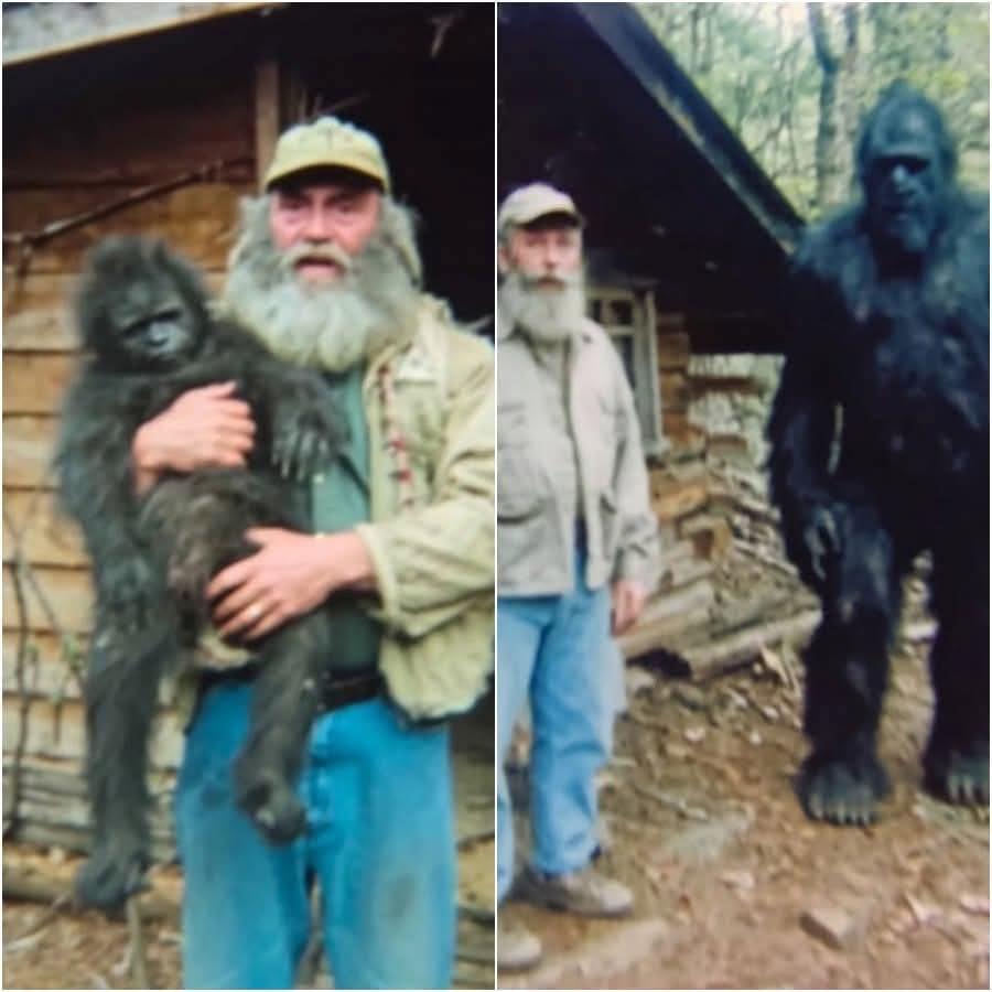 Con el paso de los años, la criatura se transformó. De un animal pequeño y vulnerable, pasó a ser una figura imponente, casi humana en su postura y movimientos. La segunda imagen que sacudió al pueblo fue aún más perturbadora: el hombre de la cabaña, de pie junto a un ser gigantesco, cubierto de pelo negro, con manos y pies desproporcionados, y una mirada que destilaba inteligencia y desafío. No era un gorila adulto, ni tampoco un hombre disfrazado. Era algo intermedio, una especie de “eslabón perdido” que parecía salido de una pesadilla darwiniana.