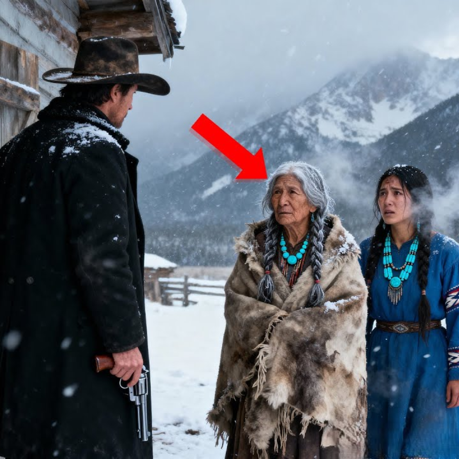 Al llegar, la madre intentó erguirse, aunque sus rodillas vacilaban. “Acoge a mi hija… yo dormiré fuera,” susurró, la voz rota por el agotamiento. La hija apretó la mano de su madre, los ojos fieros pero opacados por la preocupación. El vaquero se acercó con calma deliberada, negando con suavidad la petición. Nadie dormía fuera de su cabaña, salvo por voluntad propia, y aquellas mujeres claramente ya no tenían opciones. Las condujo adentro, acomodando a la madre en su cama y ofreciendo a la hija el banco cerca del fuego. El resplandor cálido iluminó sus rostros, revelando la profundidad de su fatiga. Sirvió un poco de estofado, manteniendo la voz baja, cuidadosa. La madre apenas probó unas cucharadas antes de que la fuerza la abandonara. La hija aceptó su porción en silencio, las manos temblorosas aunque intentaba ocultarlo.
