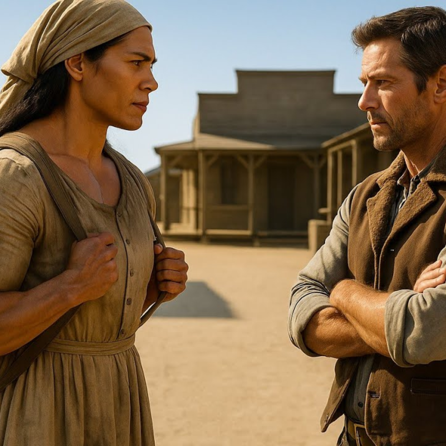 Pero el pueblo tenía otros planes. Tres días después, montaron hacia la ciudad para conseguir suministros. Los susurros comenzaron en el momento en que entraron en la tienda de comestibles. Las mujeres agarraban sus faldas como si Martha llevara una enfermedad. Los hombres sonreían y se daban codazos. El dueño de la tienda, el Sr. Brennan, se negó a servirle. “No atendemos a mujeres de moral cuestionable”, dijo fríamente. El puño de Ezra golpeó la mesa. “Servirás a mi socia con respeto o nunca volverás a ver otro centavo de mí ni de ningún ganadero que conozca.”